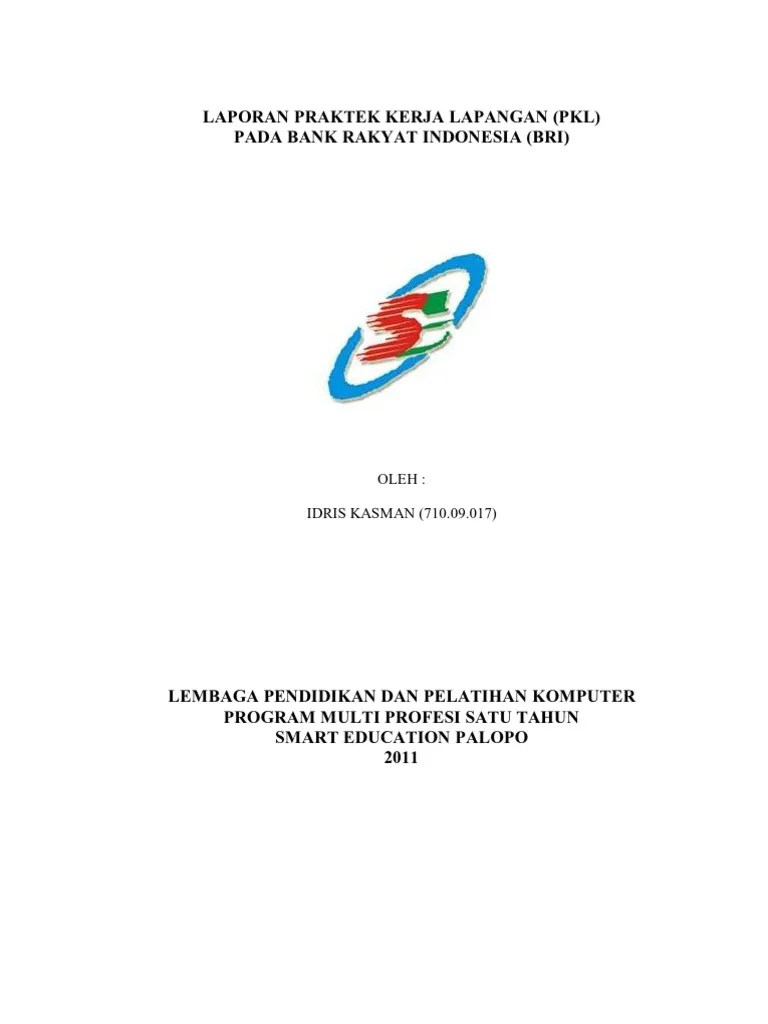 Laporan ini merupakan hasil kegiatan praktik kerja lapangan (pkl) di bank bri syariah kcp demak. Bca syariah yang menjalankan perbankan dengan konsep syariah,pt bca. Alasan praktikan memilih praktek kerja lapangan. Penulisan laporan ini menguraikan manfaat serta tujuan dari pelaksanaan. Halaman sampul depan sampul depan memuat: